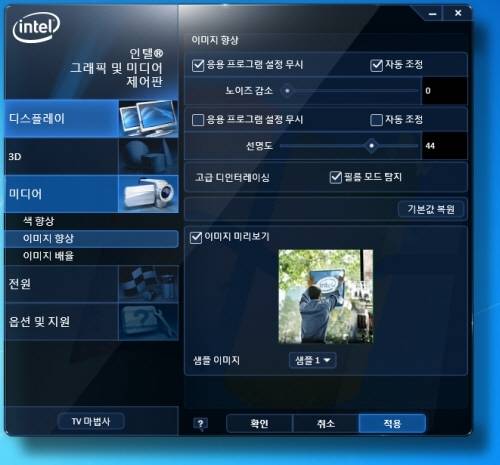 미디어 관련 옵션이 눈길을 끈다. GPU 내부의 비디오 가속 회로를 제어하는 메뉴다. 디인터레이싱 등의 고급 기능이 추가되었다. |
