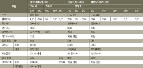 차라리 단순 명료하게 코어 i7은 LGA 1366 소켓을 쓰는 쿼드코어 블룸필드, i5는 LGA 1156 소켓의 쿼드코어 린필드, 코어 i3은 듀얼코어 클록데일필드로 구분했다면 더 낫지 않았을까? 코어 i5는 어떤 CPU인가라는 질문을 한다면 인텔조차 명확한 답변을 하지 못할 만큼 제품 분류가 복잡해졌다.