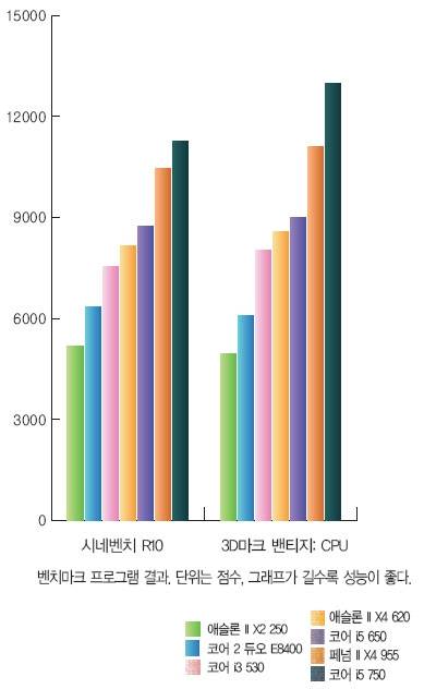 눈여겨볼 부분은 경쟁이 불가피한 애슬론 II X4 620이다. 성능은 코어 i5 650과 비슷하고, 값은 i3 530보다 비슷하다. 제조공정이 달라 소비전력에서도 차이가 있지만 소비자가 체감할 수준은 아니다.