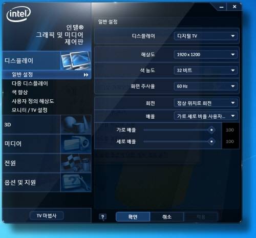 그래픽 제어판의 옵션과 설정 항목이 대폭 늘어났다. 아직 정식 드라이버가 아닌 탓인지 화면 전환이나 멀티디스플레이 설정에서 조금 불안한 모습을 보인다. |