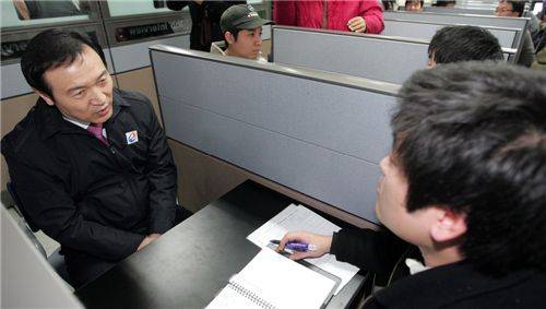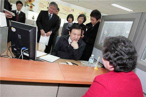 [아시아경제 장용석 기자] 임태희 노동부 장관이 12일 오후 경기 수원 종합고용지원센터를 방문, 명예 일일 상담원으로서 외국인 고용서비스와 관련한 현장 상담을 진행하는 등 구직자들을 격려하고 있다.