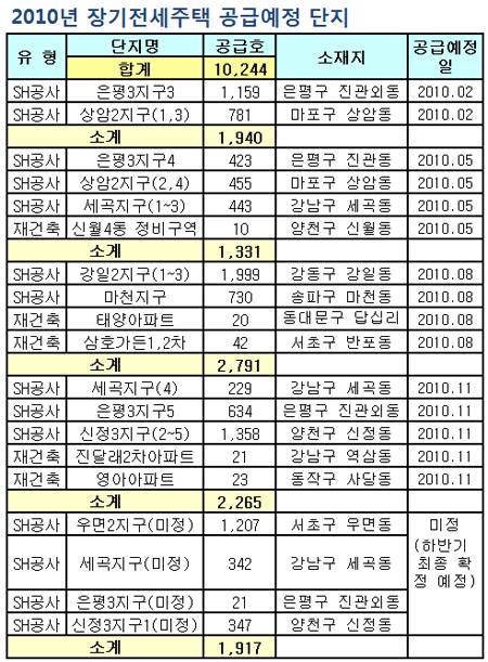 서울시, 올해 장기전세주택 1만가구 공급