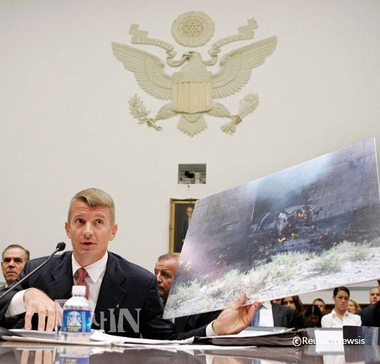 실제로 2007년 미국 하원의 '감독 및 정부 개혁위원회' 청문회에 나온 블랙워터 대표 에릭 프린스는 2005년 이후 이라크에서 발생했던 총격 사건 중 195건에 이 회사가 연루됐다는 것을 인정했다. 1주일 평균 1.4건이다. 하원 청문회에 나온 블랙워터 요원은 "20명으로 구성된 팀이 1주일에 4~5회꼴로 총격을 가했다"라고 진술했다. 딕 체니 전 부통령이 CEO로 있던 핼리버튼의 자회사인 블랙워터의 창립자는 전 미국 해군 특수부대(Navy SEAL) 출신 에릭 프린스이다. 그는 아버지 부시 대통령 시절 백악관에서 근무한 경력이 있다.