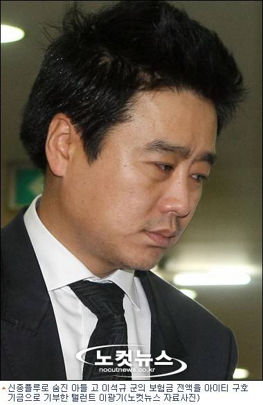이광기는 2일 국제구호개발기구 월드비전(회장 박종삼, www.worldvision.or.kr)에 아들 고(故) 이석규 군의 이름으로 받은 보험금 전액을 아이티 긴급구호후원금으로 냈다.