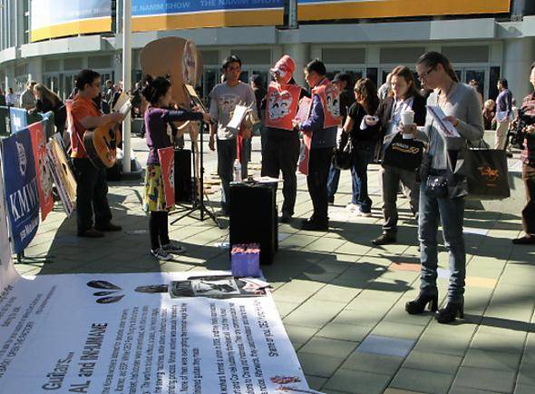 남쇼 행사장 내 콜트 부스는 중급 규모다. 그러나 1월16일만큼은 어느 브랜드의 부스보다 붐볐다. 세계적인 기타리스트 진 시먼스(그룹 키스)가 콜트 기타를 사용하기로 하며 홍보 행사에 참여한 덕분이다. 하지만 한국에서 온 콜트 직원들이 시먼스 인터뷰는 물론, 줄 서 기다리는 이들과의 인터뷰도 방해했다. 서진모 해외영업팀 과장은 "아무것도 모르는 사람한테 그걸 말해서 나쁜 이미지를 주는 걸 원치 않는다"고 말했다. 이름을 밝히길 거부한 한 직원은 "내가 아는 열에 여덟은 (원정시위 때문에) 한국 이미지가 나빠진다고 한다"며 "(기자) 당신 같은 사람들 때문에 회사 망하고 일자리를 잃으면 어쩔 거냐"고 말했다. 미국에서 유일하게 결락 없이 모두를 이해했으나, 가장 불편하고 본데없는 언어였다. 이미 오래전 일자리를 잃은 이들이 센터 밖에서 시위를 잠시 멈추고 점심용 햄버거를 먹고 있었을 낮 1시께다.