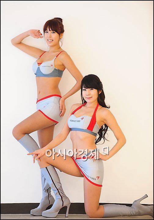 [아시아경제 박성기 기자]레이싱모델 김시원과 서승현이 강원도 태백 레이싱파크에서 열린 '2009 타임트라이얼 레이스 & GTM'에서 포즈를 취하고 있다.