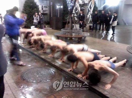 이들은 옷을 다 갖춰 입은 인솔자 4~5명의 지시에 따라 시내를 활보했으며 한 대형 멀티플렉스 극장 앞에서는 잠시 멈춰 서 인솔자의 구호에 맞춰 엎드려 뻗치기와 양팔 좌우로 벌려 뛰기를 하기도 했다.