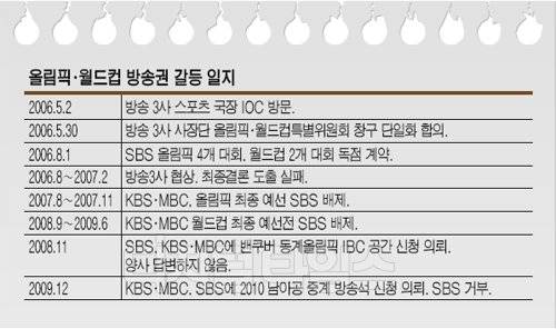 2016년까지 올림픽ㆍ월드컵 SBS 독점계약KBSㆍMBC와 협상과정서 갈등