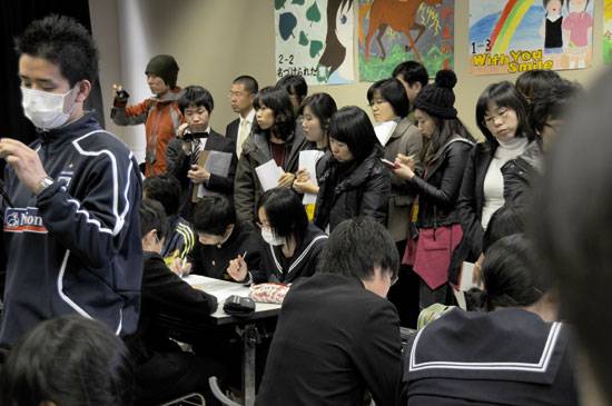 학교의 모든 운영 원리를 수업 중심으로 재편하는 데서 '배움의공동체'는 시작된다. 위는 일본 모토요시와라 중학교 공개 수업 장면. |