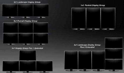 물론 모니터 6대를 연결할 수 있는 제품인 HD5870 아이피니티6 에디션 역시 올 상반기 안에 나올 예정이다. 이 제품은 미니 디스플레이 포트 6개를 달아 모니터 6대 연결을 지원한다. 지원 해상도도 높아지는 만큼 원활한 데이터 처리를 위해 기본 메모리도 2GB로 높였다.■ 모니터 구성 자율도 높아아이피니티의 또 다른 장점은 모니터 6대를 통째로 묶는 건 물론 모니터 2대 이상씩 한 그룹으로 묶어 쓸 수도 있다는 것이다. 그 뿐 아니라 이들 그룹은 가로로 길게 보는 랜드스케이프(Landscape)나 세로인 포트레이트(Portrait)로 섞은 복합 모드로 볼 수 있다. 모니터 위치도 양옆은 물론 위아래에 놔둘 수도 있는 등 구성이 자유롭다.