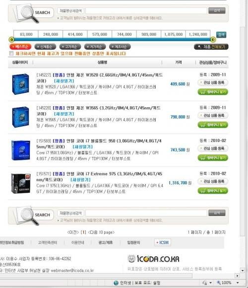 현재 가장 빠른 데스크톱 CPU인 코어 i7 익스트림 975는 130만 원이 넘는 값에 팔리고 있다. |
