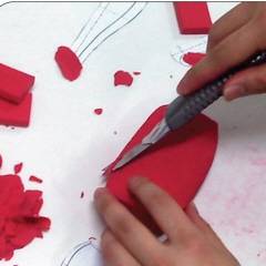 1) 칼라믹스, 도면, 드라이기 등을 준비한다.2) 드라이기로 적당히 가열 후 주물러 도면에 대보면서 원하는 형태를 대강 만든다.3) 손으로 문지르거나 칼로 잘라내어 도면과 사이즈를 확인하며 마무리한다.4) 직접 손으로 잡아보면서 크기와 형태를 가늠해본다.