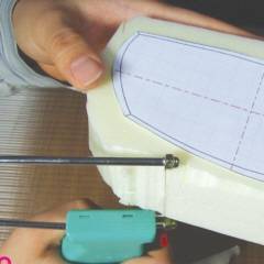 1) 골드폼, 도면, 칼, 열선, 사포, 마스크 등을 준비한다. (열선이 꼭 필요한건 아님)2) 도면에 폼을 붙인 후 칼, 열선 등으로 잘라내며 큰 형태를 만들어간다.3) 사포로 갈면서 도면과 비교하며 세부 형태를 다듬어 간다.4) 직접 손으로 잡아보면서 크기와 형태를 가늠해본다.