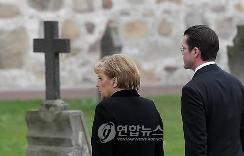 epa02109737 German Chancellor Angela Merkel (L) and German Minister of Defense Karl-Theodor zu Guttenberg (R) arrive for the obsequies of three German Bundeswehr soldiers KIA in St Lamberti church in Selsingen, Germany, 09 April 2010. Three paratroopers were killed in action during a combat in Afghanistan's Kunduz region on 02 April 2010. EPA/KAY NIETFELD / POOL < 뉴스의 새 시대, 연합뉴스 Live >< 모바일 애플리케이션 >< 포토 매거진 >< 저작권자(c)연합뉴스. 무단전재-재배포금지. >