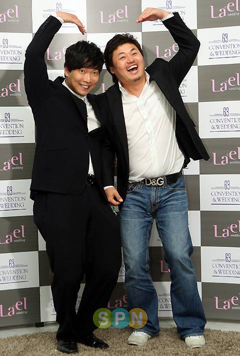 [이데일리 SPN 김정욱기자] 개그맨 박준형과 윤택(오른쪽)이 10일 오후 서울 여의도 63씨티 컨벤션 웨딩홀에서 열릴 개그맨 문천식의 결혼식에 하객으로 참석했다.