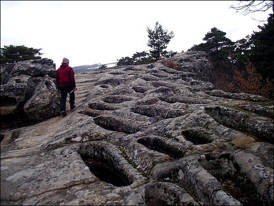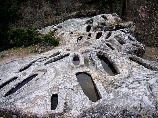 작은 바위 동산 하나가 시신을 담던 무덤들의 흔적으로 뒤덮여 있다. 물론 시신을 안착할 당시에는 엄청난 무게의 바위를 그 위에 얹었을 것이다. 덮개바위는 모두 사라져 인체의 형상을 한 홈들을 자세히 관찰할 수 있다. 키가 컸던 사람, 작은 사람, 갓 태어나자마자 죽었을 것으로 여겨지는 아기들의 자리도 이곳저곳에서 발견된다.