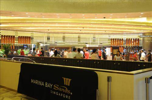 싱가포르 마리나베이샌즈 카지노 입구◇바다를 메워 카지노를 만들다 = 지난달 27일 오후 3시(현지시각).싱가포르의 마리나베이샌즈 복합리조트 내에 있는 카지노가 문을 열었다. 첫날 객장을 점령한 손님은 세계의 `카지노 단골'인 중국인이었다. 가족, 연인 단위의 중국 관광객들이 첫날부터 몰려들었다.