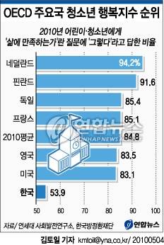 - <연합시론> 미래주역의 행복지수가 OECD 꼴찌인 현실