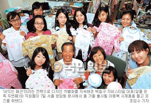 이 회사 대표 박칠구(58)씨. 그는 창업 후 줄곧 디자인 혁신에 남다른 애정을 쏟았다. 박 대표가 내의 사업과 인연을 맺은 것은 1984년. 영남대 경영학과 졸업 후 상경해 서울 동대문 흥인시장에서 의류업을 시작했다.