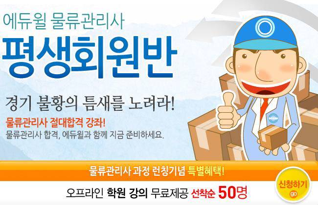 에듀윌은 물류관리사 교육강좌 론칭을 기념해 선착순 50명에게 서울 대방학원 강의 무료 수강혜택을 증정할 예정이다.