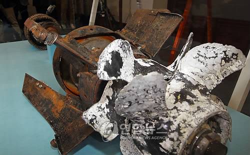 점점 답지를 좁혀가던 합조단이 `스모킹 건'이라며 북한을 100% 지목할 수 있었던 것은 지난주 수거한 프로펠러가 달린 어뢰의 추진동력부를 확보했기 때문이다.