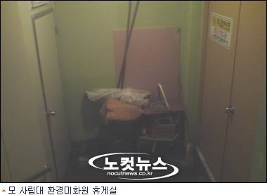 이렇게 후미진 곳에 휴식공간을 마련하게 된 이유에 대해 사립대학 청소부 양씨는 "학생들이 지나다니는 곳에서 쉬면 안 될 것 같아서, (학생들한테) 피해를 끼칠까 봐"라고 겸연쩍은 표정을 지어 보였다.