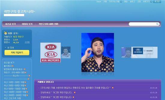 곽한구는 지난 달 14일 모 포털사이트에 중고차 매매 카페를 열어 중고차 딜러로 활동하고 있고 이날 이 사이트가 알려지면서 현재 4만9000여 명의 방문객이 폭주하고 있다.