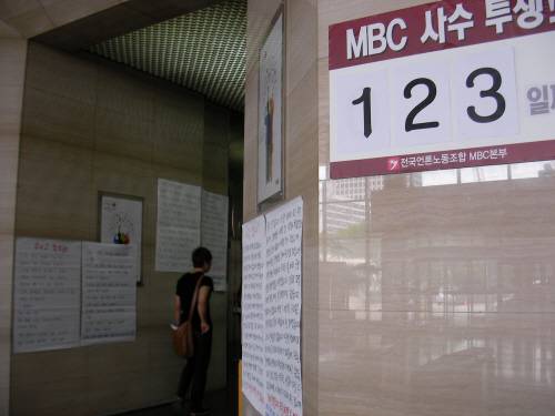 ▲ 11일 서울 여의도 MBC 본사 1층 '민주의 터' 모습. 123일은 황희만 현 부사장이 애초 보도본부장으로 선임된 날부터 투쟁이 시작됐음을 의미한다. 최훈길 기자 chamnamu@ |