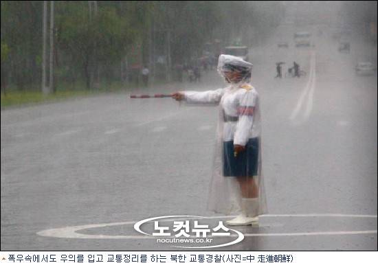 '폭우도 걱정 없어요' 북한 여자 교통경찰