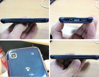왼쪽엔 볼륨 조절키가 있다. 후면엔 카메라 모듈과 바로 옆에 외장스피커가 있다. 삼성 단말기엔 거의 탑재가 되던 LED플래시는 없다. 아쉬운 면이다. 두께를 얇게 만들기 위해서 플래시를 뺀 것이라고 했지만 아이폰4 때문에 이유에서 변명이 되어 버린 부분이다.