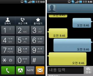 ↑왼쪽은 다이얼화면, 오르쪽은 문자 메시지함(대화형) |