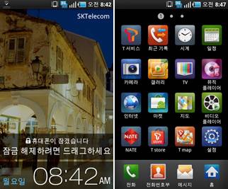 ↑왼쪽이 잠금화면, 오른쪽이 메인메뉴. |