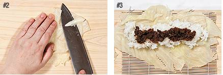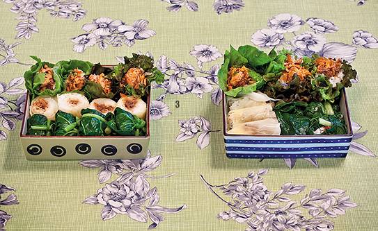 3 김발에 양배추를 두 장 정도 겹쳐 올린 다음 그 위에 밥을 얹고 꽁치쌈장을 올린다.4 김밥을 쌀 때처럼 돌돌 만 다음 먹기 좋은 크기로 썬다. ◎ 근대쌈밥
