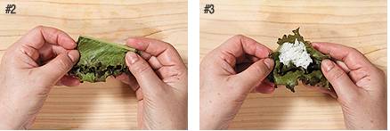 1 상추를 한 장 한 장 깨끗이 씻어 물기를 제거하고 딱딱한 심 부분은 잘라낸다.2 상추를 고깔 모양으로 접는다.3 ②의 상추 안에 밥을 넣고 참치쌈장을 올린다. 상추 고깔의 뾰족한 부분을 아래로 향해 꽂아 풀리지 않게 도시락에 담는다.
