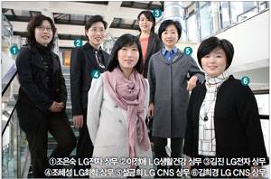 현재 LG그룹 내 여성임원들은 총 15명이다. 그중 사원으로 입사해 임원까지 오른 여성만 6명으로 국내 대기업 중 가장 많다. 계열사별로 보면 LG전자, LG CNS에 2명씩 포진해 있고 LG화학, LG생활건강에도 각각 1명씩 있다.