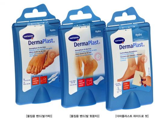『발가락 물집용 밴드』, 『발 뒷꿈치용 밴드』와 원하는 크기 만큼 잘라쓸수 있는 『더마플라스트 하이드로 컷』 으로 여행, 캠핑 중 맨발 또는 샌들을 신고 다칠 수 있는 상처와, 여성들이 구두를 신고 생길 수 있는 물집 등 다양한 부위의 상처에 적용이 가능하다.
