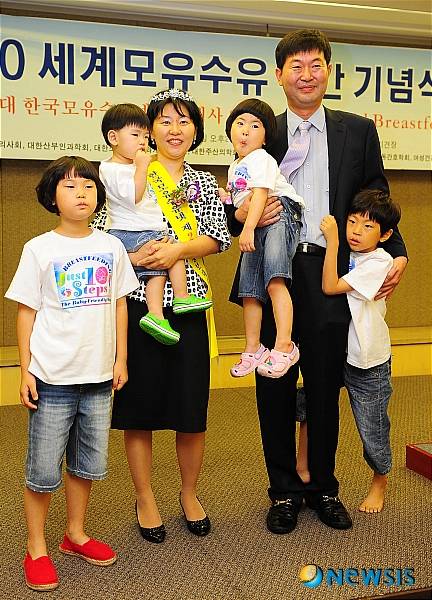 【서울=뉴시스】팽현준 기자 = 2대 한국모유수유넷 홍보대사로 위촉 받은 신한미 판사가 29일 오후 서울 태평로 프레스센터에서 열린 '2010 세계모유수유 주간 기념식 및 교육'에 참석, 위촉식을 갖고 가족들과 기념촬영을 하고 있다.