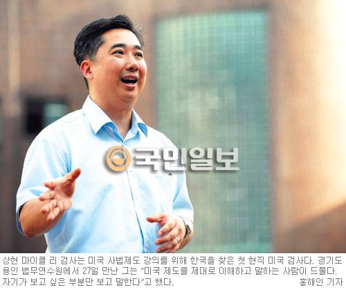상현 마이클 리(38·한국명 이상현) 검사의 한국말은 짧다. 태어난 지 1년 만에 미국으로 이민 갔고 19세에 한국을 찾아 20일 머문 것이 전부다. 그는 일부러 이 표현을 외운 듯했다.