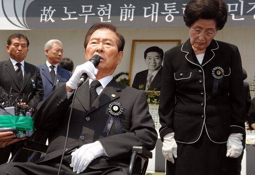 ◇노무현 전 대통령 서거 = 민주정권 10년을 같이한 사람으로서 내 몸의 반이 무너진 것 같은 심정이었다. 장례위원회 측에서 내게 조사를 부탁했다. 이를 수락했다. 그런데 정부에서 반대한다고 다시 알려왔다. 내가 준비한 조사는 결국 읽지 못했다. 이제 그의 영전에 조사를 바친다. "당신은 저승에서 나는 이승에서 힘을 합쳐 민주주의를 지켜 내십시다." < 김광호 기자 >