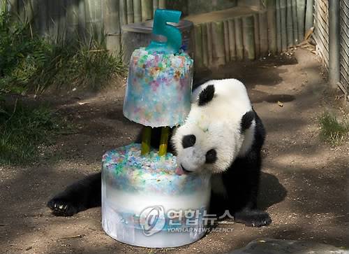 美 동물원 판다 "제 생일케이크예요. 냠냠~"