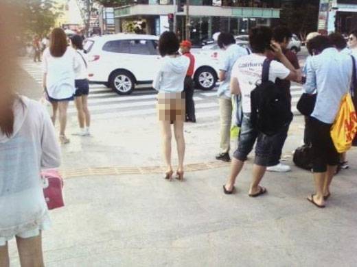 티팬티를 입고 시내를 활보한 여성의 사진이 인터넷에 게재돼 화제를 모으고 있다.