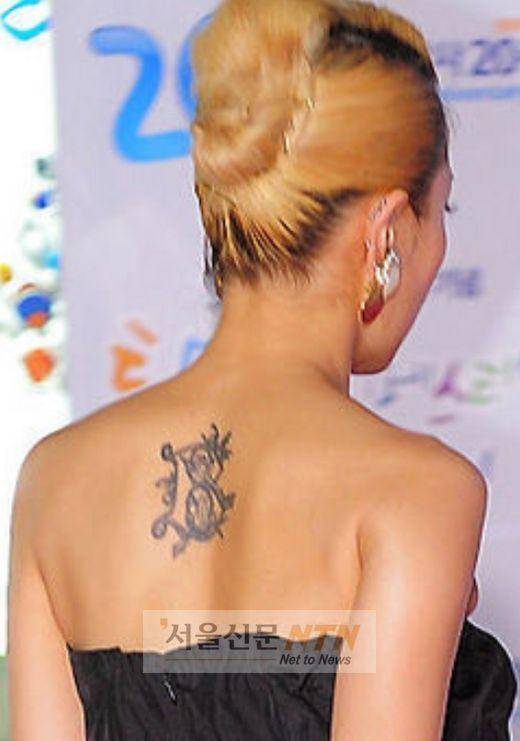 가수 보아가 갸루화장에 이어 등에 새겨진 '천사문신'을 드러낸 채 공식행사에 참석 화제가 되고있다.