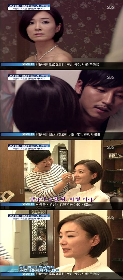 한편 오연수는 최근 젊은 연하남들과 연애하는 역할을 많이 하고 있다. 오연수는 "남편 손지창이 요즘 모니터를 잘 안 해준다. 그러나 보기 싫어도 보게된다. 기분이 썩 좋아 보이지 않는다"고 전했다.