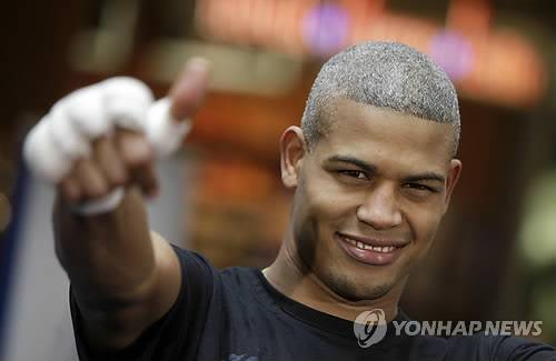 epa02311024 Challenger Giovanni Lorenzo of the Dominican Republic poses during a public training session in the Cologne Arcades in Cologne, Germany, 01 September 2010. WBA middleweight World Champion Felix Sturm of Germany will defend the title against Lorenzo on 04 September 2010. EPA/ROLF VENNENBERND < 뉴스의 새 시대, 연합뉴스 Live >< 모바일 애플리케이션 >< 포토 매거진 >< 저작권자(c)연합뉴스. 무단전재-재배포금지. >