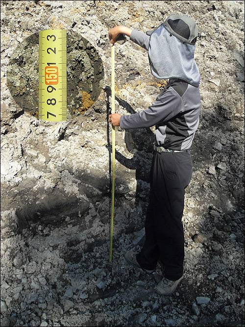 기자가 현장을 방문하기 이틀 전에는 형체가 보전된 돼지 사체가 100여두 이상 나왔다고 했다. 이날 오후, 기자가 현장에 도착했을 때는 매립한 지 오래된 곳을 발굴하고 있어서 온전한 모습의 돼지는 볼 수 없었다. 포클레인이 땅을 파헤칠 때마다 썩은 토양 사이사이로 돼지의 잔해들로 보이는 부패한 고깃덩어리가 나왔다. 포클레인으로 파내고 있는 오염된 토양의 두께를 측정해 보니 150cm가 넘었다.