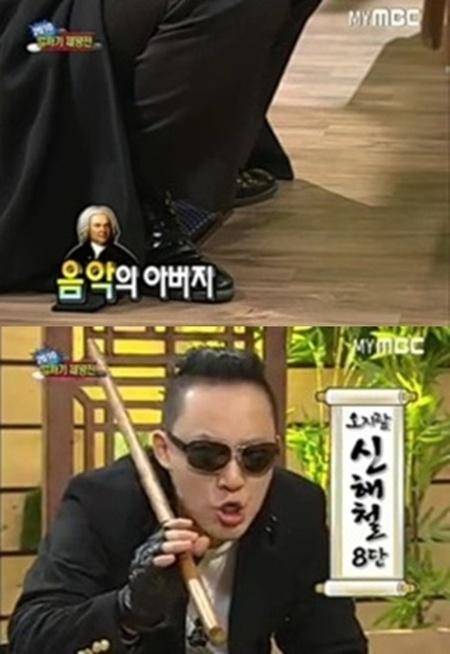신해철을 민망한 웃음을 지었고 '알까기 맞수'로 선정된 윤도현 역시 대표 히트곡 '사랑 TWO'로 인한 굴욕을 참으며 대결에 집중했다.