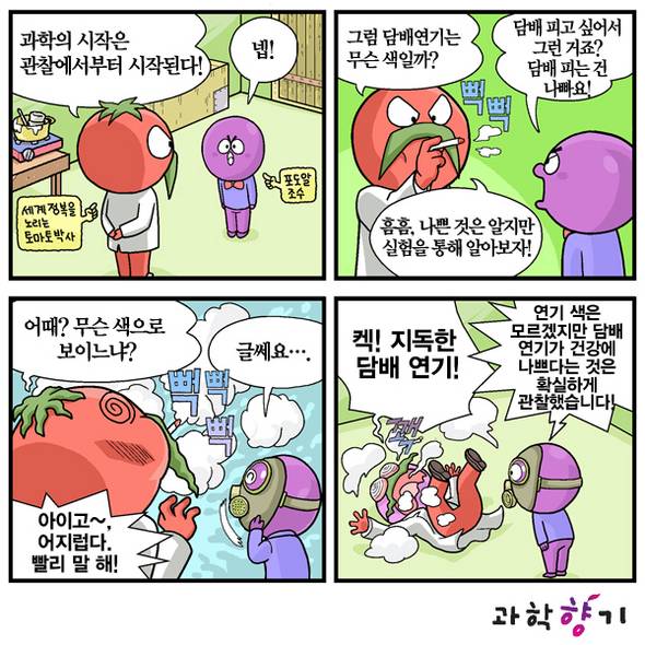 "담배를 바꾸다니~. 원래 담배 연기는 파란색이야. 왜 이럴 것 같니?"