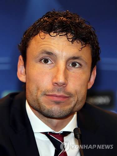 epa02360443 Mark van Bommel of Germany's soccer team FC Bayern Muenchen looks on during a press conference at the Hotel Hilton in Basel, Switzerland, 27 September 2010. Switzerland's FC Basel will play FC Bayern Muenchen in a Champions League, Group E, group stage match on 28 September 2010. EPA/PATRICK STRAUB < 뉴스의 새 시대, 연합뉴스 Live >< 모바일 애플리케이션 >< 포토 매거진 >< 저작권자(c)연합뉴스. 무단전재-재배포금지. >