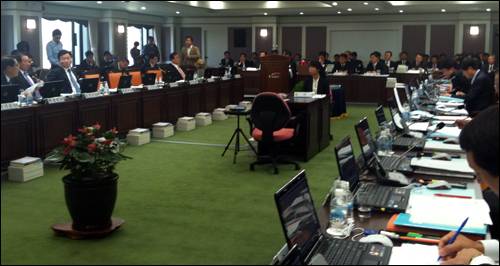 강기갑 민주노동당 의원은 고성을 질렀다. 7일 국회 국토해양위원회(국토위)의 한국수자원공사(수자원공사)에 대한 국정감사에서다. 이날 국감에서는 '친수구역 활용에 관한 특별법(친수구역 특별법)'과 관련한 여야의 치열한 공방이 벌어졌다. 특히 수자원공사가 4대강 사업에 투여한 예산 8조 원을 환수하기 위한 개발계획 수립을 위해 연구용역을 실시한 것이 문제가 됐다.