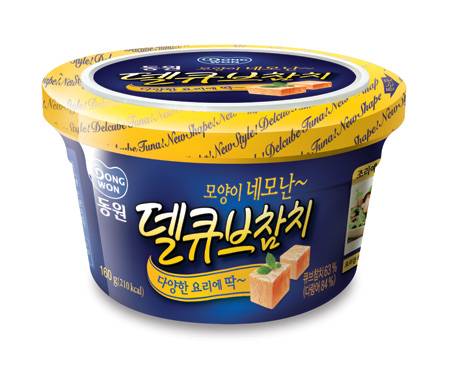 새로운 개념의 델큐브참치를 만들기 위해 동원F&B는 참치 가공기술에 어묵 공법, 햄 공법과 함께 제조분야의 커팅 기술까지 동원했다. 맛과 영양은 참치지만 먹었을 때 느낌은 두부와 햄의 중간 정도로 그동안 재료로 활용하기 어려웠던 카레, 파스타, 볶음 요리의 재료로도 훌륭하다. 160g 용량에 2,600원 선이다.